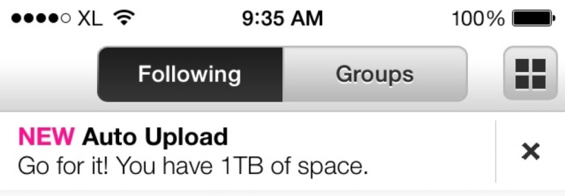 Urged on by Flickr to just upload all the photos because it gives you 1TB of space. Ever thought that because it’s Flickr I don’t want to autoupload every single pic I take? It’s supposed to be a showcase isn’t it, or do they want to change that mind set?
